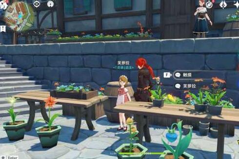 原神中,塞西莉亚花可以通过蒙德城内的花店店主芙罗拉处购买,位置如下: