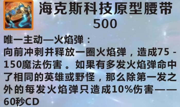 通过鞋子附魔而成的,可以主动释放后向前冲刺并释放一圈火焰弹,造成75-145点魔法伤害。需要注意的是如果有多发火焰弹命中了相同的英雄或者野怪,那么除第一发之外的每一发火焰弹只会造成10%伤害。该装备很适合诺手这种腿短的英雄,在为他们补充输出的同时,还可以使他们多一段小位移,更容易黏上对方。