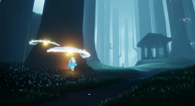 2.跟着白鸟为我们的指明方向进行,因为雨林不能随心所欲的飞翔,所以每一步都需要很小心。跟着白鸟,会遇到雨林地图中的先祖和光之翼。