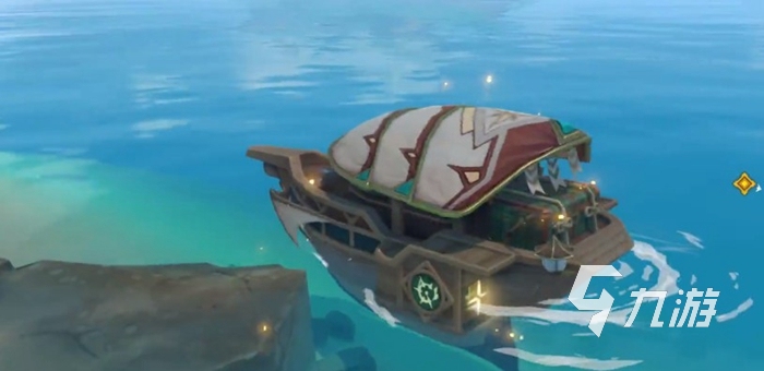 我们的冒险等阶在达到15级左右,就可以前往璃月港,然后往东边游。游过去可以发现到稻妻地图的边界,是一块没有制作完成的草地。在这里有一个小坡,我们从小坡上滑下去,如果出现了加载界面并且界面中出现的是稻妻的logo(就是神社的标志)就说明进入成功了。在加载之后我们会自动来到离岛的这个位置,如果没有成功大家可以多尝试几次。