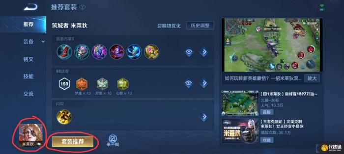 2,切换英雄为米莱迪,点击套装推荐。