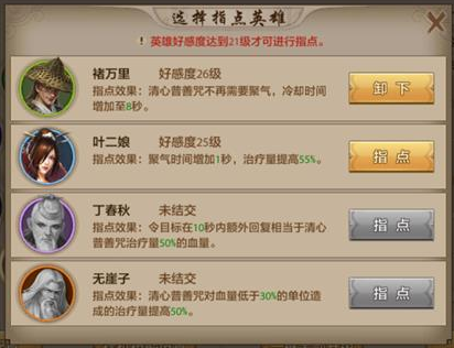 4.清心普善咒技能指点:最有用的是丁春秋,保证加血没有cd的前提下,用最快的速度加最多的血量。