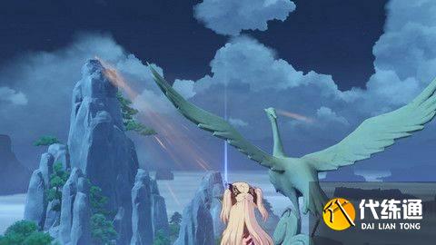 10.从石碑的位置飞落到发光点后,即可看到第三只鸟,调整鸟的角度,使其出现金光连到庆云顶的石碑即可