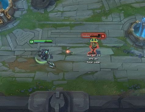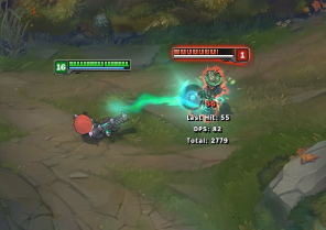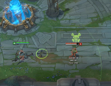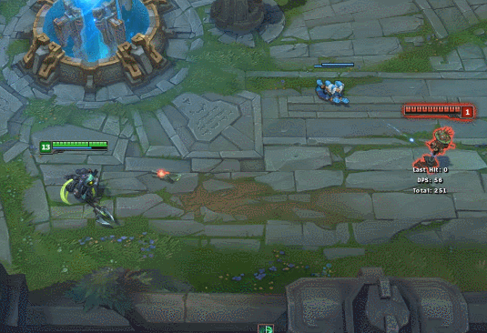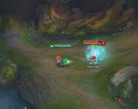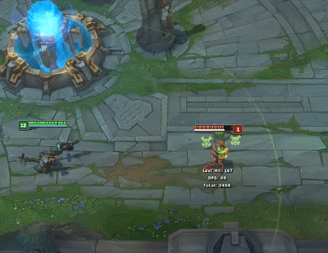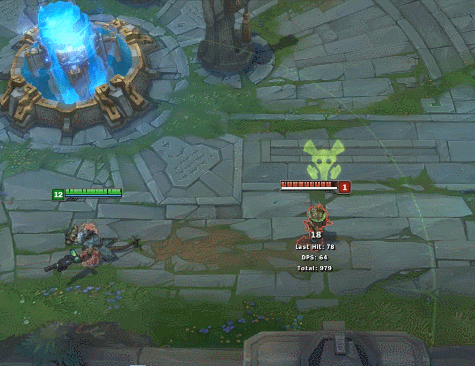 小编这里把截图速度调慢了一半,可以看到图奇用E技能之后会丢出一个针管一样的东西,可以想想这个英雄就是触发被动的道具了。
