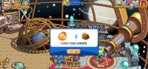 洛克王国占星台地点的火灵石需要你点击地球仪上的光进行反射来获得火灵石