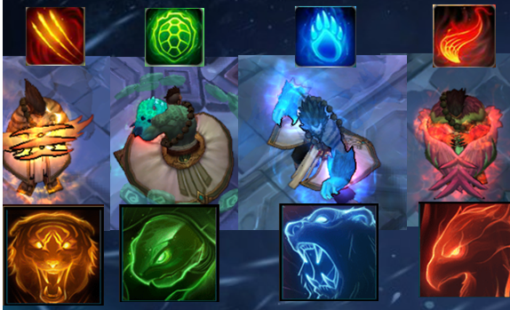 在技能方面,被动会在英雄拳头上显示出红色的光,还满级时的技能在激活乌迪尔时会在身后出现相应的兽灵虚体,其发型和身体上将会出现纹生、虎爪、龟手、熊掌以及凤翅,显得异常霸气,就像赛亚人一样有木有。
